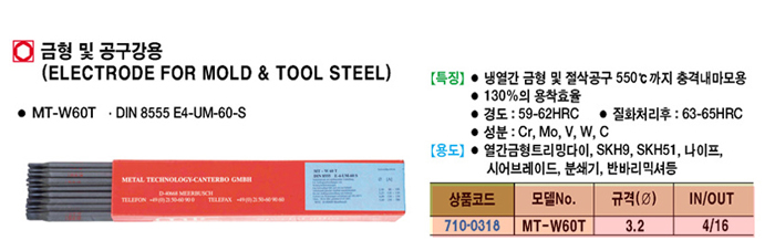 [MTC] ±ÝÇü ¹× °ø±¸°­¿ë (ELECTRODE FOR MOLD & TOOL STEEL) MT-W60T:4°³¼¼Æ®