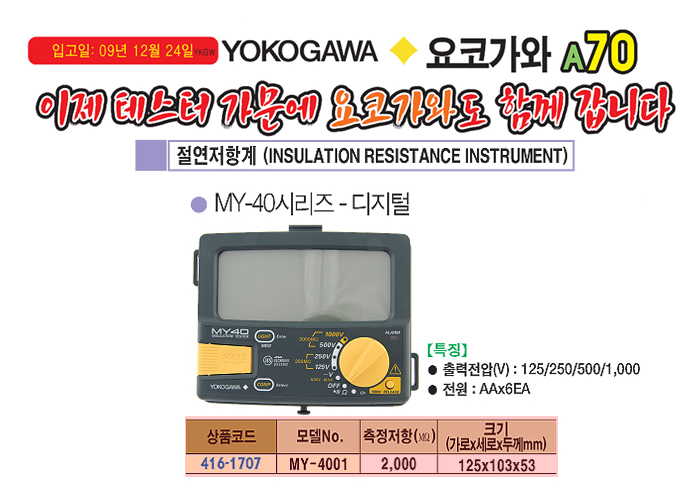 [¿äÄÚ°¡¿Í] Àý¿¬ÀúÇ×°è (INSULATION RESISTANCE INSTRUMENT) MY40½Ã¸®Áî:ÀϽÃǰÀý!!