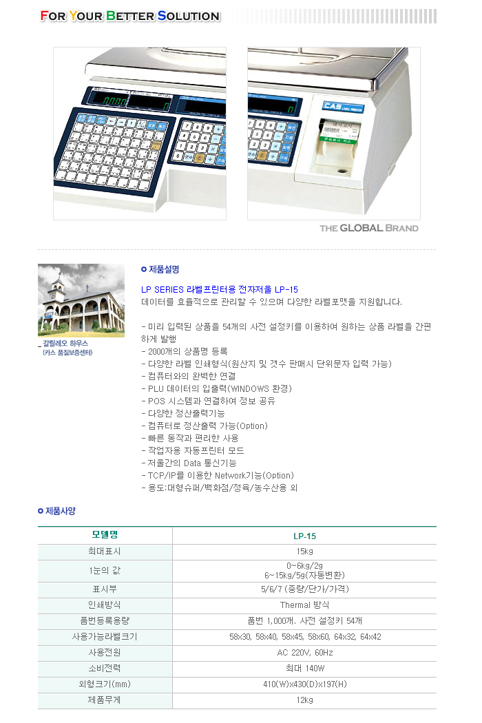 [CAS]À¯ÅëÇü ÀüÀÚÀú¿ï LP-15(1.7V)(¶óº§ÇÁ¸°ÅÍ Ãâ·ÂÇü)/(ÃÖ´ëÁß·® 15Kg, ÃøÁ¤Á¤µµ 2g)/(Label Printing Retail Computing Scale)