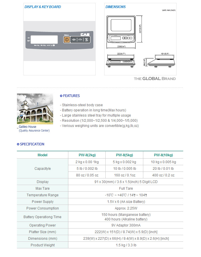 [CAS]½ºÅÙ¸öü ÀüÀÚ½ÄÁß·®Àú PW-II(5KG)(ÃÖ´ëÁß·® 5KG, Ç¥½ÃÁ¤µµ 2g)(Simple Weighing Scale)