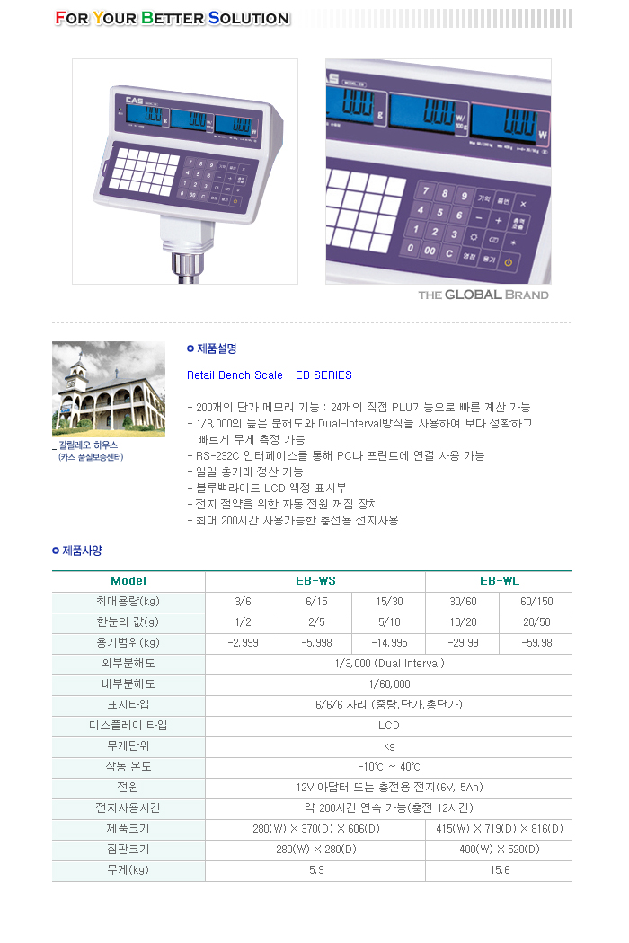 [CAS]À¯ÅëÇü ÀüÀÚÀú¿ï EB-60WL(¹æ¼öÇü)/(ÃÖ´ëÁß·® 60Kg, ÃøÁ¤Á¤µµ 10g)/(EB Series Retail Bench Computing Scale)
