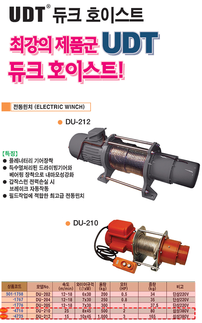 [UDT] UDTµàÅ© ´ëÇü Àüµ¿À©Ä¡ DU-212(¼Óµµ 15m/Min ºÎÇÏÁß·® 1Åæ)(Electric Winch):1/21 ÇöÀç ÀϽÃǰÀý!!