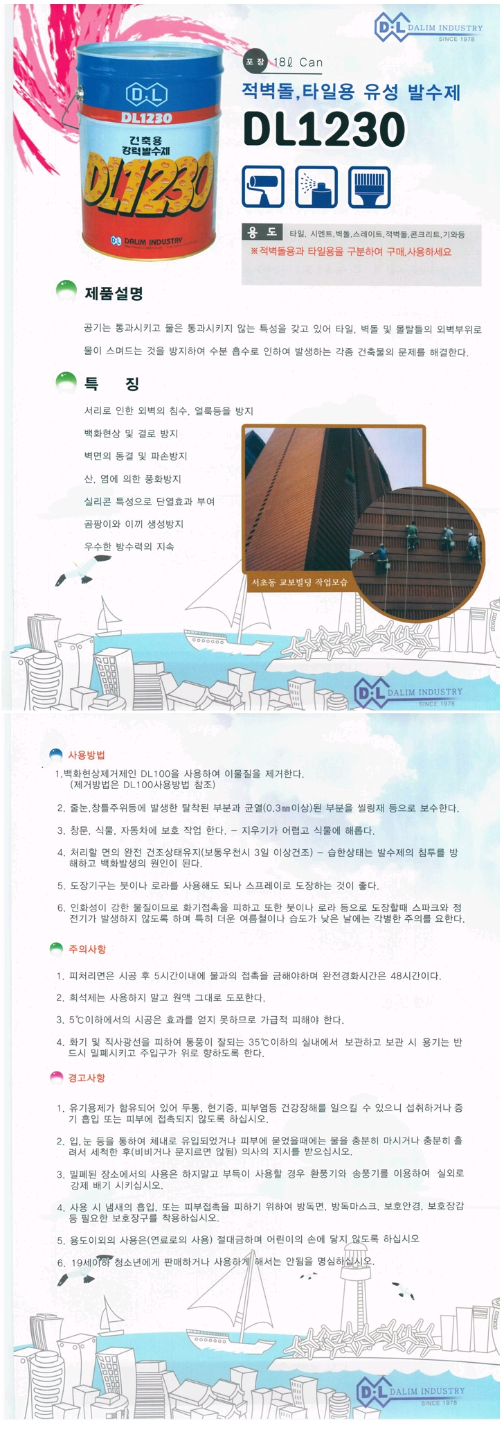 [´Ù¸²] ¹ß¼öÁ¦(DL1230 18¸®ÅÍ)(Àûº®µ¹ ŸÀÏ¿ë À¯¼º¹ß¼öÁ¦)(Water Repellent Agent)=>Á¦Ç°´ÜÁ¾!