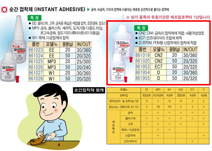 [¾ËÅ×ÄÚ/ALTECO] ¼ø°£Á¢ÂøÁ¦ (INSTANT ADHESIVE)(D 50ml)(EPDM, PDM µîÀÇ ³­Á¢Âø¼º)