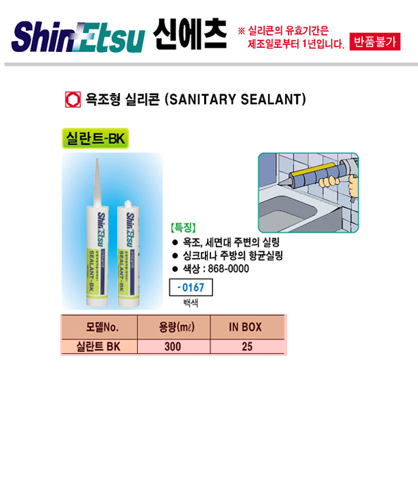 [½Å¿¡Ã÷] ¿åÁ¶Çü½Ç¸®ÄÜ(SANITARY SEALANT)(½Ç¶õÆ® BK ¹é»ö)(¿åÁ¶, ¼¼¸é´ë, ¾ÅÅ©´ë, ÁÖ¹æÀÇ Çâ±Õ½Ç¸µ)(25°³¼¼Æ®):3/14 ÇöÀç ÀϽÃǰÀý!!