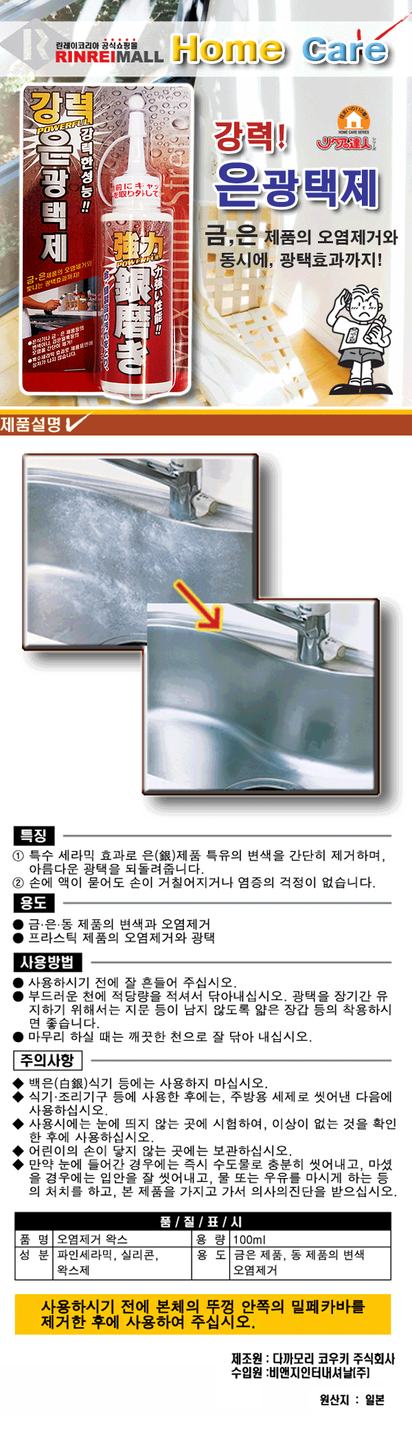 [B&G] °­·Â Àº ¿¬¸¶Á¦(100ml, ÀºÁ¦Ç° º¯»ö Á¦°Å, ±Ý/Àº/µ¿/ÇÃ¶ó½ºÆ½ ¿À¿°Á¦°Å ÄÚÆÃ/±¤ÅÃ)