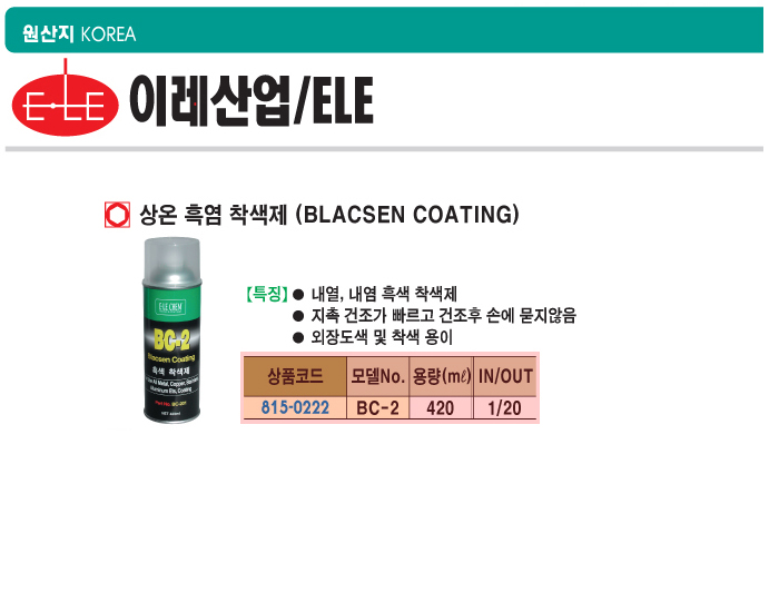 [ÀÌ·¹] »ó¿Â Èæ¿° Âø»öÁ¦(BLACSEN COATING)(BC-2 420ml)(³»¿­, ³»¿° Èæ»ö Âø»öÁ¦)=>ÀÎÅÍ³Ý ÆÇ¸Å ºÒ°¡(È­Æò¹ý ´ë»ó»óǰ)