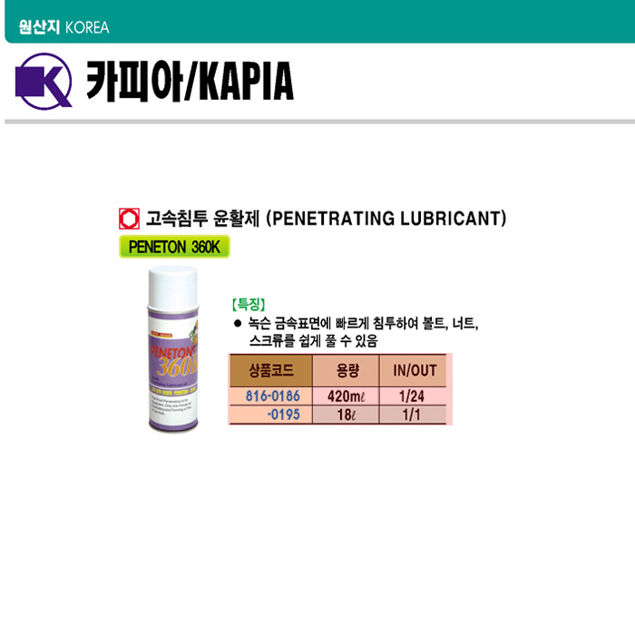 [Ä«ÇǾÆ] °í¼ÓħÅõ À±È°Á¦(Penetratibg Lubricant)(PENETON 360K 420ml)=>ÆÇ¸ÅÁß´Ü(È­Æò¹ý ´ë»ó)!