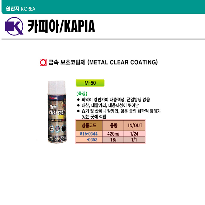 [Ä«ÇǾÆ] ±Ý¼Óº¸È£ÄÚÆÃÁ¦(Metal Clear Coating)(M-50 18¸®ÅÍ)