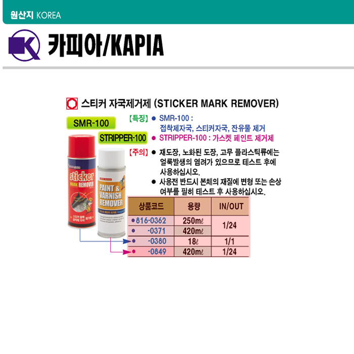 [Ä«ÇǾÆ] ½ºÆ¼Ä¿ÀÚ±¹Á¦°ÅÁ¦/º®º¸Á¦°ÅÁ¦(Sticker Mark Remover)(SMR-100 300ml)(20°³ 1¹Ú½º):6/03 ÇöÀç ÀϽÃǰÀý!!