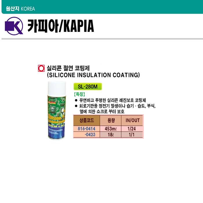 [Ä«ÇǾÆ] ½Ç¸®ÄÜ Àý¿¬ ÄÚÆÃÁ¦(Silicon Insulation Coating)(SL-280M 18¸®ÅÍ=>Á¦Ç°´ÜÁ¾!)