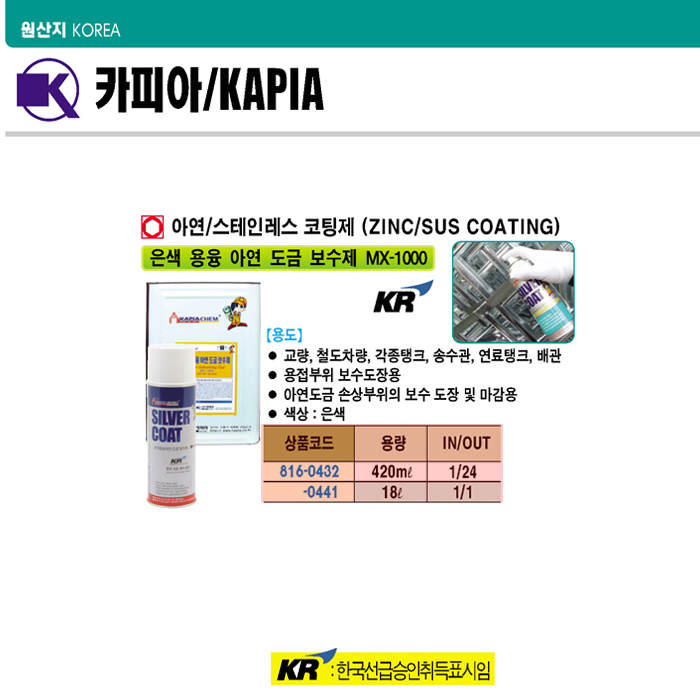 [Ä«ÇǾÆ]¾Æ¿¬/½ºÅ×Àη¹½º ÄÚÆÃÁ¦(Zinc/Sus Coating)(Àº»ö ¿ëÀ¶¾Æ¿¬ µµ±Ý º¸¼öÁ¦ MX-1000 420ml)=>ÀÎÅÍ³Ý ÆÇ¸Å ºÒ°¡(È­Æò¹ý ´ë»ó»óǰ)