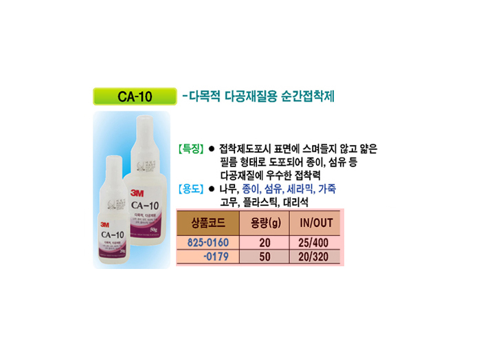 [3M] ¼ø°£Á¢ÂøÁ¦(Instant Adhesive)(¸ñÀç/´Ù°øÁú¿ë CA-10 20g)(25°³ ¹Ú½º´ÜÀ§ ÆÇ¸Å)=>º» Á¦Ç° ´ÜÁ¾=>3M CA-11(´ëüǰ)À¸·Î º¯°æÃâÇÏ¿¹Á¤ÀÔ´Ï´Ù.