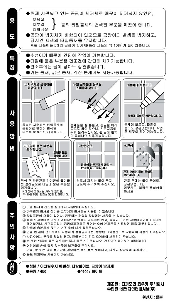 [B&G] ŸÀÏÆ´»õ ¶§ Á¦°ÅÁ¦(12g, ¿å½Ç/ºÎ¾ý/È­Àå½Ç ŸÀÏÆ´»õ ¿À¿°Á¦°Å)