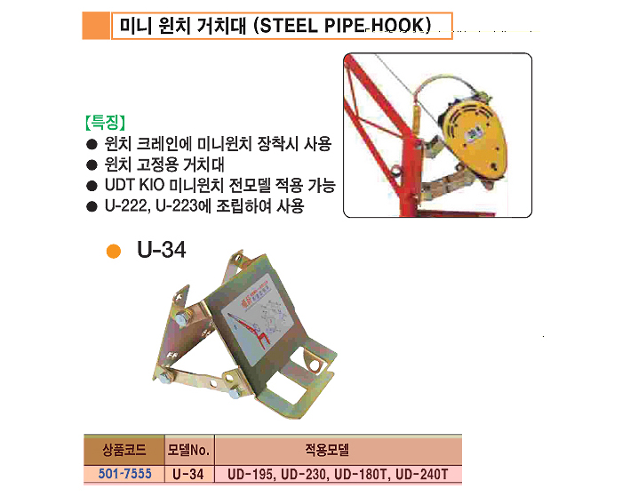 [UDT] UDT KIO ¹Ì´Ï À©Ä¡°ÅÄ¡´ë)Steel Pipe Hook)(UD-195, UD-230, UD-180Tm UD-240T¿ë)