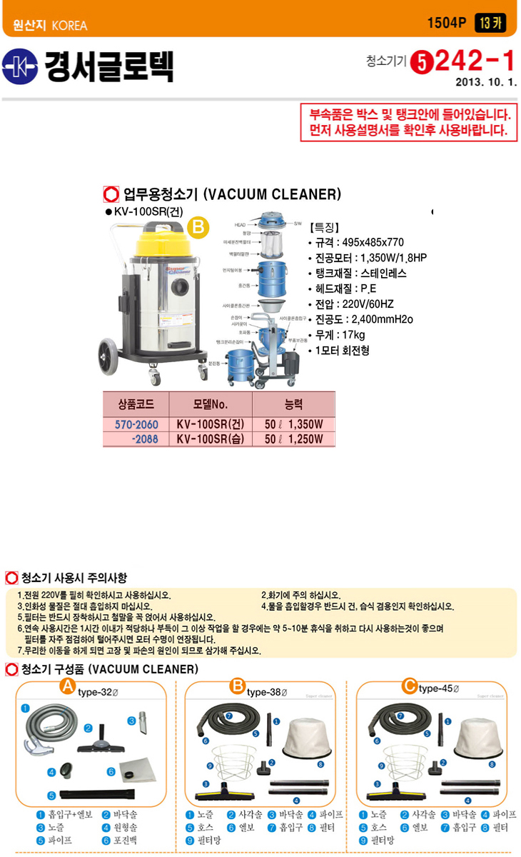 [°æ¼­] ¾÷¹«¿ëû¼Ò±â(KV-100SR, °Ç½Ä 1350Watt/½À½Ä 1250Watt ¼±Åð¡´É, 50¸®ÅÍ)(ÁÖ¹®Àü Àç°íÈ®ÀÎ)