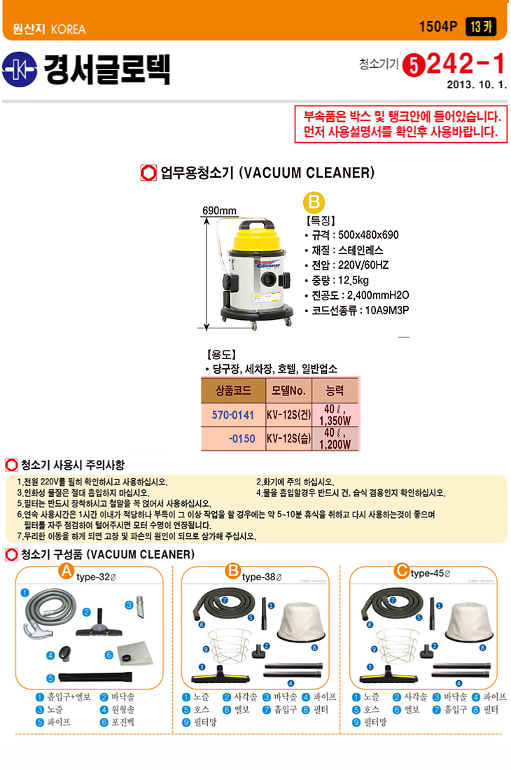 [°æ¼­] ¾÷¹«¿ëû¼Ò±â(KV-12S, °Ç½Ä 1350Watt/½À½Ä 1200Watt ¼±Åð¡´É, 40¸®ÅÍ)