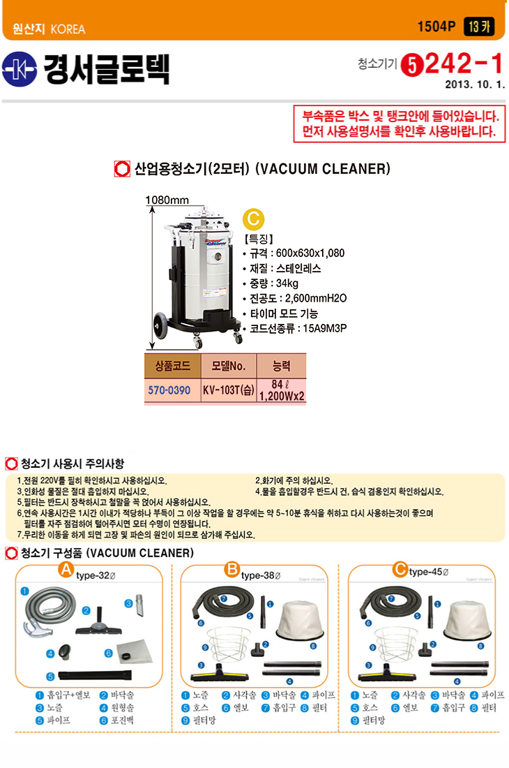 [°æ¼­] »ê¾÷¿ëû¼Ò±â 2¸ðÅÍ (KV-103T, ½À½Ä 1200Watt x 2´ë, 84¸®ÅÍ)(ÁÖ¹®Àü Àç°íÈ®ÀÎ)
