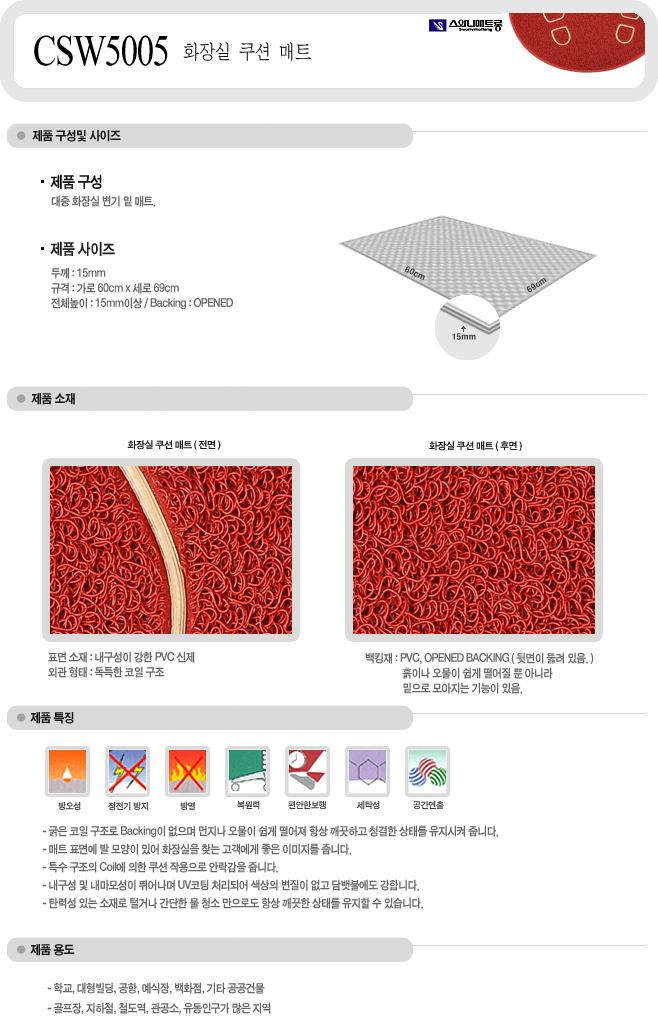 [½º¿Í´Ï]È­Àå½Ç Äí¼Ç¸ÅÆ®(CSW5005, ³ôÀÌ 15mm 600x690mm, Àû»ö)