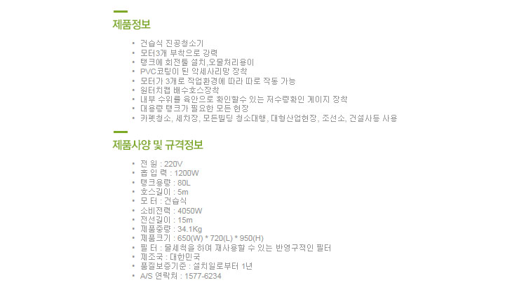 [º¸Èï] ¿µ¾÷¿ë/»ê¾÷¿ë 3¸ðÅÍ Áø°øÃ»¼Ò±â(S-803, °Ç½Ä/½À½Ä °â¿ë, 80¸®ÅÍ, 1350Watt x 3°³)(Vacuum Cleaner)