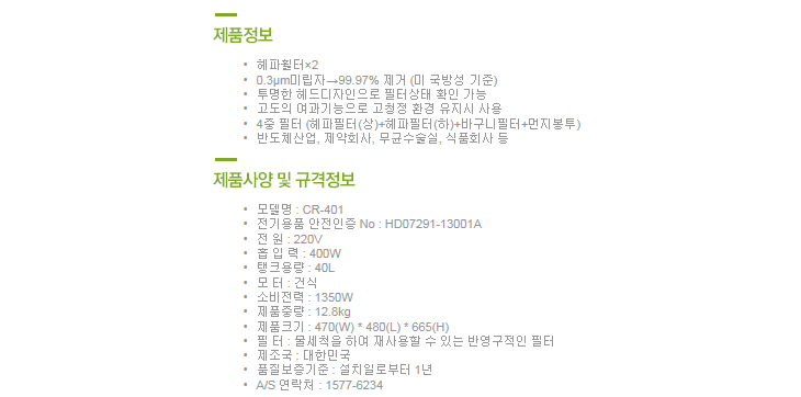 [º¸Èï] Å©¸°·ë ½ºÅÙ·¹½º Áø°øÃ»¼Ò±â(CR-401S=>CR-401·Î º¯°æ, °Ç½Ä¸ðµ¨, 40¸®ÅÍ, ÇìÆÄÇÊÅÍ, 1350Watt x 1°³)(Vacuum Cleaner)