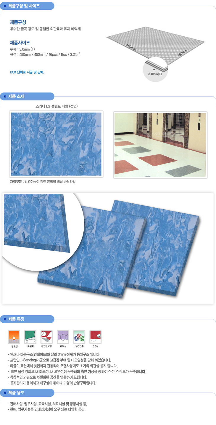 [SW] LG °¶·±Æ® ŸÀÏ(GAT-714, 16¸Å ¹­À½/¾à 1Æò½Ã°ø°¡´É, 3.0T, 450x450mm, ¸¶ºí¸µ¹«´Ì, »ó¾÷¿ë¹Ù´ÚÀç)