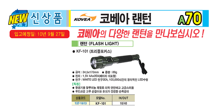 [ÄÚº£¾Æ] ·£ÅÏ(FLASH LIGHT)(KF-101, Æ®¸®ÇÃÆ÷Ä¿½º)(1.5VAAx2°³)(¹èÅ͸®¹ÌÆ÷ÇÔ)