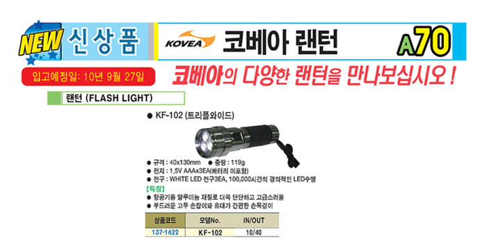[ÄÚº£¾Æ] ·£ÅÏ(FLASH LIGHT)(KF-102, Æ®¸®ÇÿÍÀ̵å, 1.5VAAx3°³)(¹èÅ͸®¹ÌÆ÷ÇÔ)