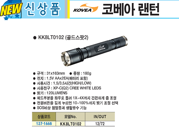 [ÄÚº£¾Æ] ·£ÅÏ(FLASH LIGHT) KK8LT0102(°ñµå½ºÆÌ2, 1.5VAAx3°³)(¹èÅ͸®Æ÷ÇÔ) )