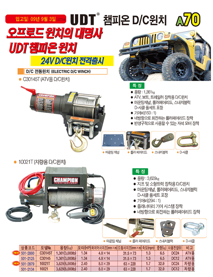 [UDT] D/C Àüµ¿À©Ä¡ (ELECTRIC D/C WINCH, 10021T, DC24V, 3.6Åæ, Â÷·®¿ë)