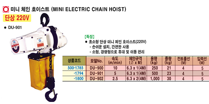 [UDT] DU ¹Ì´ÏüÀΠȣÀ̽ºÆ® (MINI ELECTRIC CHAIN HOIST)(DU-902, ºÎÇÏÁß·®1Åæ, üÀÎ4¹ÌÅÍ)
