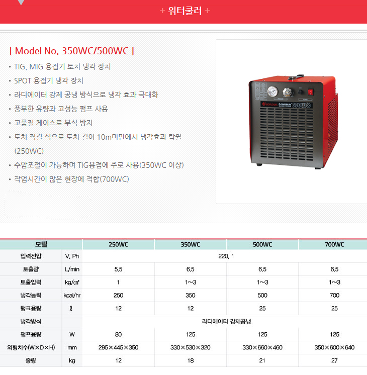 [¿ùµåÀ£] ¼ö³ÃÀåÄ¡(500WC, ´Ü»ó220V, ÅÊÅ©¿ë·®:25¸®ÅÍ, TIG/MIG¿ëÁ¢±â ÅäÄ¡ ³Ã°¢ÀåÄ¡)(Water Cooler)