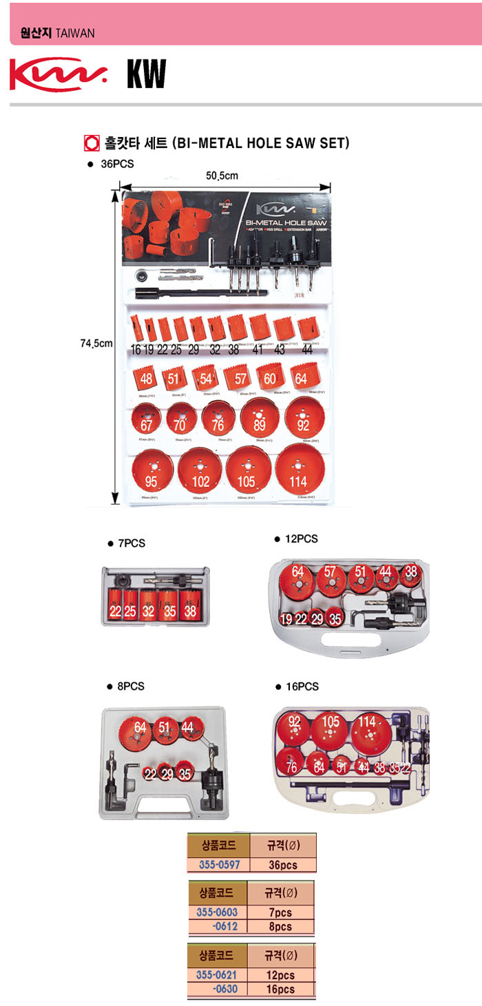 [KW]¹ÙÀ̸ÞÅ» ȦıŸ ¼¼Æ®(Bi-metal Hole Saw Set)(16Á¾)(¸ñÀç, PVC, ¾Ë·ç¹Ì´½, ¾ãÀºÃ¶ÆÇ)