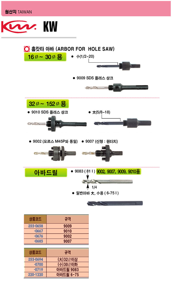 [KW]ȦıŸ ¾Æ¹Ù(Arbor for Holw Saw)(9002 ¸ð¸£½º M45P¿Í µ¿ÀÏ:32¡­152ÆÄÀÌ¿ë)