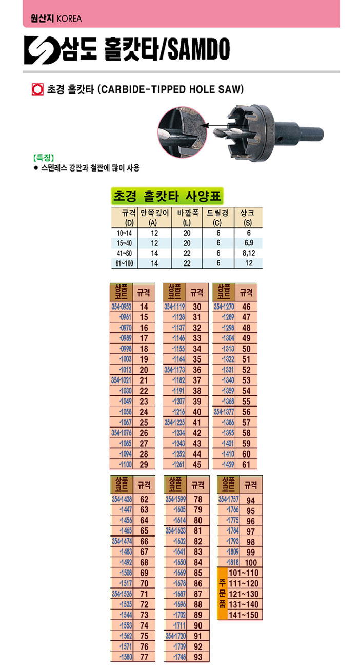 [»ïµµ]Ãʰæ ȦıŸ(Carbide Tipped Hole Saw)(50©ª)(½ºÅÙ, Ư¼ö°­, ÁÖ°­, ÁÖö, ¼®Àç, ¸ñÀç, PVC»ª±¸¶óÀÌÆ®, ºñö±Ý¼Óµî)
