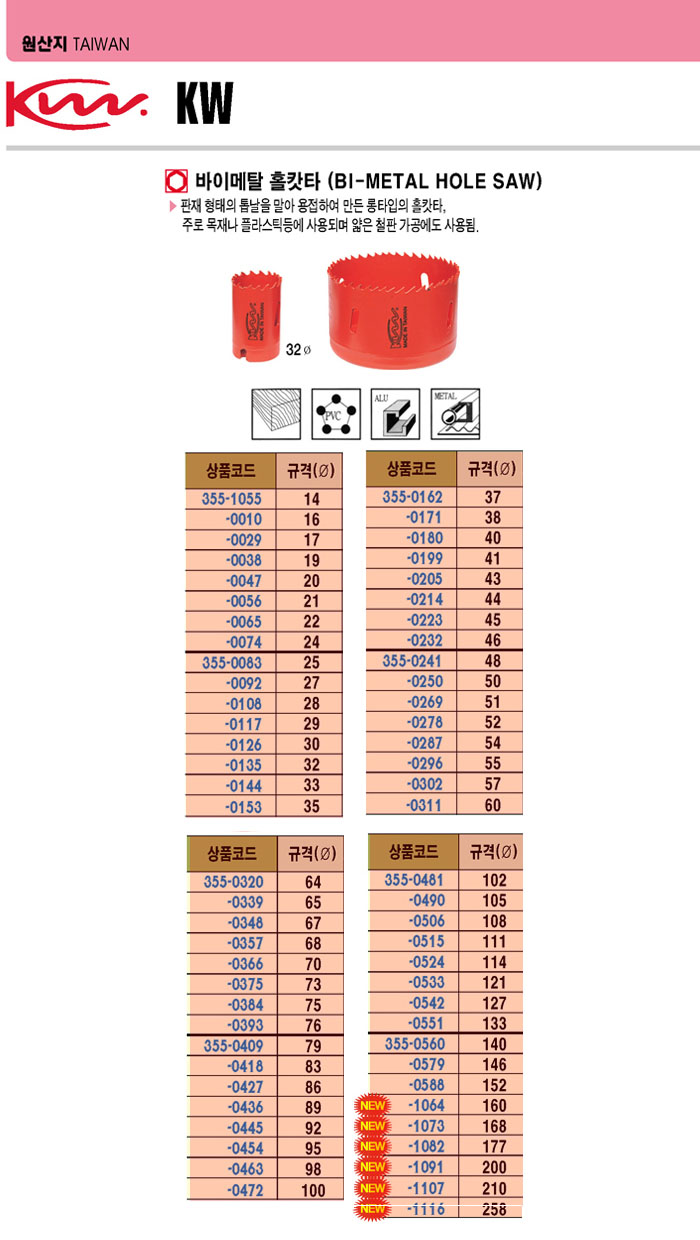 [KW]¹ÙÀ̸ÞÅ» ȦıŸ(Bi-metal Hole Saw)(33©ª)(¸ñÀç, PVC, ¾Ë·ç¹Ì´½, ¾ãÀºÃ¶ÆÇ)(¾Æ¹Ùº°µµ)