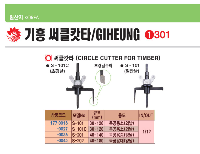 [±âÈï]½áŬıŸ(¿Ü³¯)(S-101, 30~120mm, ¸ñ°ø¿ë)(Circle Cutter For Timber)