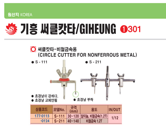 [±âÈï]½áŬıŸ(¾ç³¯)(S-111, 30~120mm, ¾Ë·ç¹Ì´½/ºñö±Ý¼Ó 1.2T, Ãʰ泯)(Circle Cutter For Nonferrous Metal)