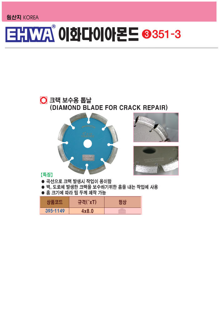 [ÀÌÈ­]Å©·¢º¸¼ö¿ëÄ®³¯(4ÀÎÄ¡x8T)(Diamond Blade for Crack Repair)