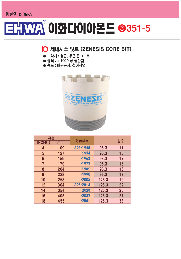 [ÀÌÈ­]Á¦³×½Ã½º ÄھƺøÆ®/ÄھƺñÆ®(10ÀÎÄ¡/253mm, ±æÀÌ:96.3mm, ö±Ù/¹«±Ù/ÄÜÅ©¸®Æ®)(Zeness Core Drill Bit)