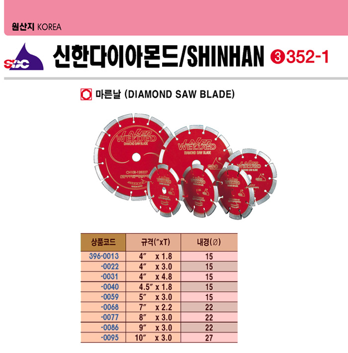 [½ÅÇÑ]¸¶¸¥³¯(9ÀÎÄ¡x3T, ³»°æ:22ÆÄÀÌ)(Diamond Saw Blade)