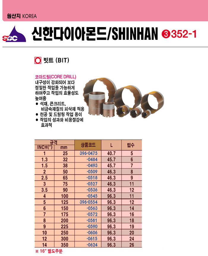 [½ÅÇÑ]ÄھƵ帱ºøÆ®(2ÀÎÄ¡/50mm, ±æÀÌ:46.3mm, ÆÁ¼ö:8°³)(Core Drill Bit)