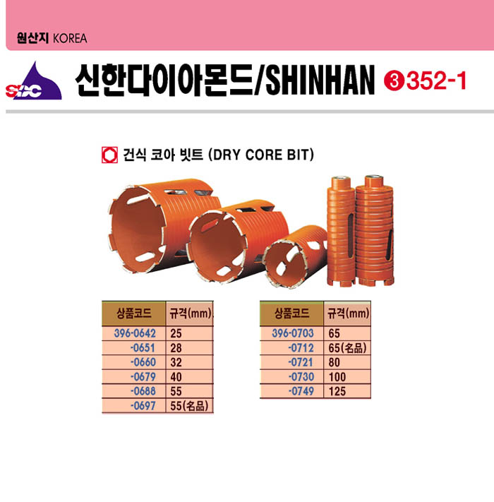[½ÅÇÑ]°Ç½Ä ÄھƺøÆ®/ÄھƺñÆ®(125mm)(Dry Core Bit)