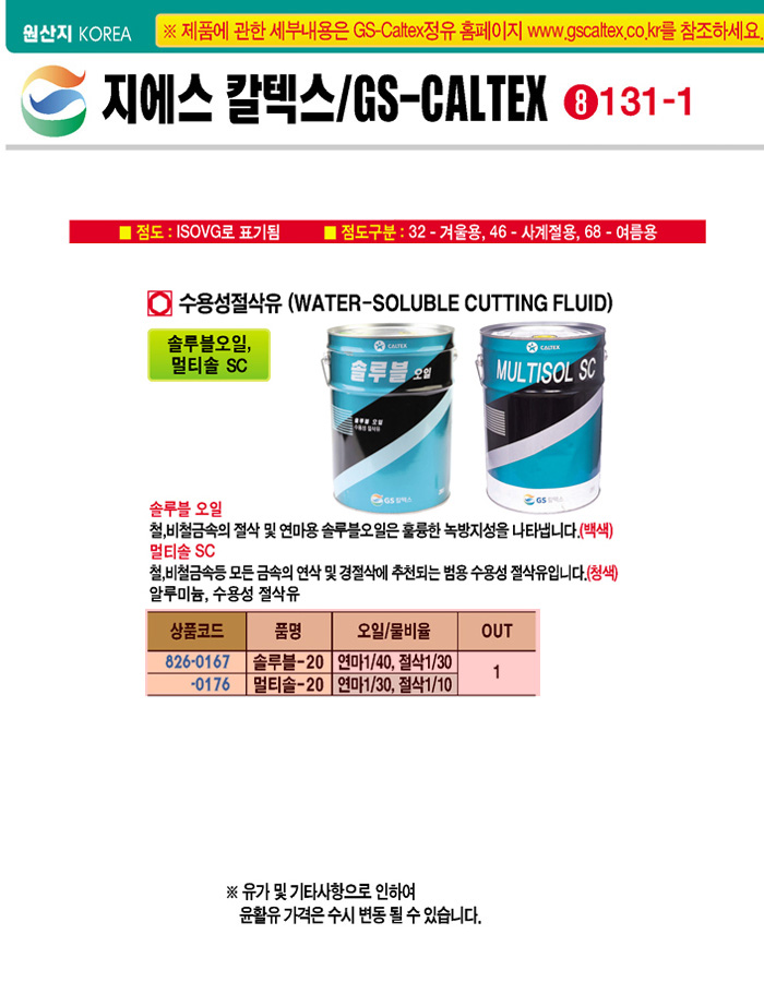[GSĮŨ½º]¼ö¿ë¼ºÀý»èÀ¯(20¸®ÅÍ, ¼Ö¸£ºí20)(Water Soluble Cutting Fluid):´ÜÁ¾!!