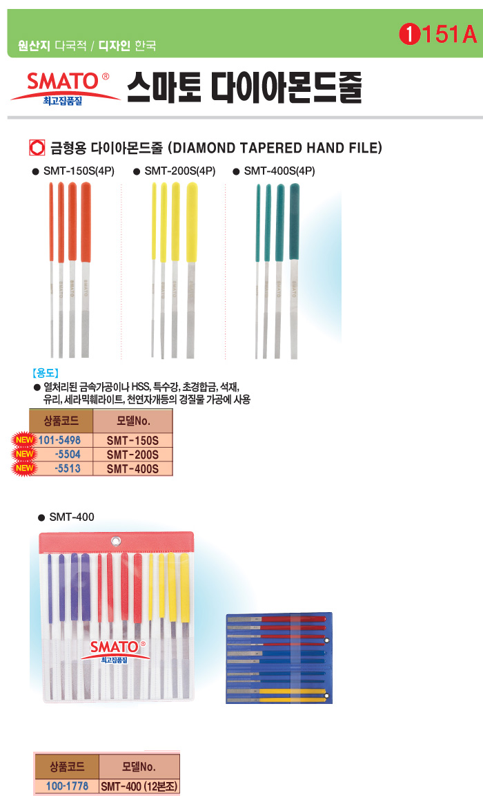 [½º¸¶Åä]±ÝÇü¿ë ´ÙÀ̾Ƹóµå ÁÙ 4°³x3Á¾¼¼Æ®:ÃÑ12°³(SMT-400)(Diamond Tapered Hand File)