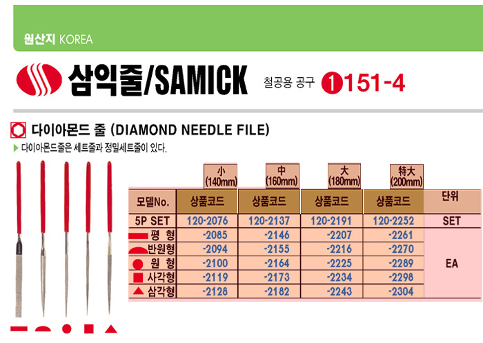 [»ïÀÍ]´ÙÀ̾Ƹóµå ÁÙ(200mm,Ư´ë, 5°³¼¼Æ®)(Diamond Needle File)