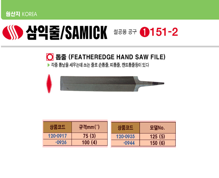 [»ïÀÍ]ÅéÁÙ(125mm/5ÀÎÄ¡)(Featheredge Hand Saw File)(20°³ ¹Ú½º´ÜÀ§ ÆÇ¸Å)