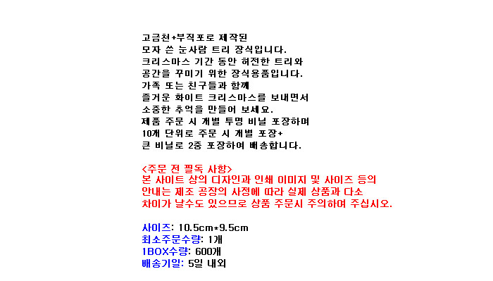 [DT]¸ðÀÚ¾´ ´«»ç¶÷ Æ®¸® Àå½Ä (10.5cm x 9.5cm) (XTS0226)