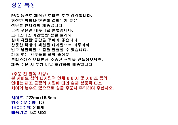 [DT]ÀÏ¹Ý Å©¸®½º¸¶½º ·Î°í Àå½Ä(·¹µå)(272cm*16.5cm,XTS0190)
