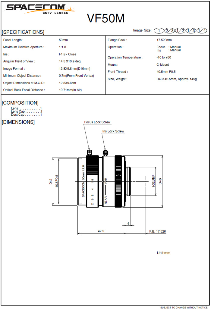 [SPACECOM]Machine Vision Lenses VF50M 1¡± 50mm(FA¿ë)(°ßÀû¿äû)